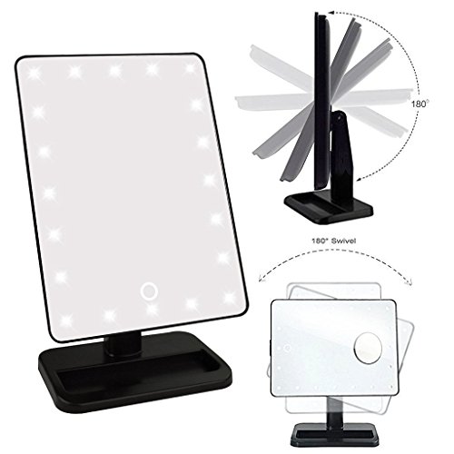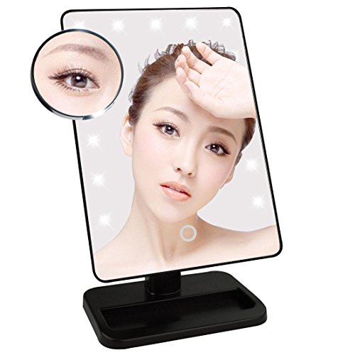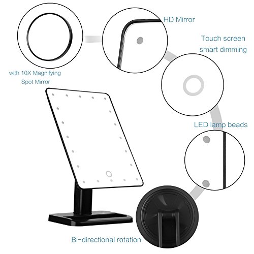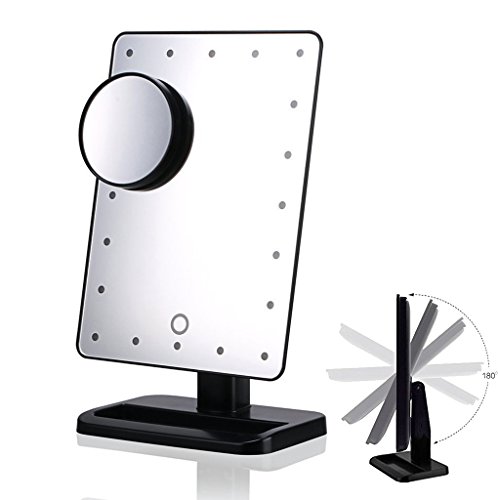 Rantizon Led Makeup Mirror 20 Light Bulbs Illuminated 180°Horizontal Or Vertical Rotation Removable 10 x Magnification Spot, Touch Screen, Shaving Mirror...
