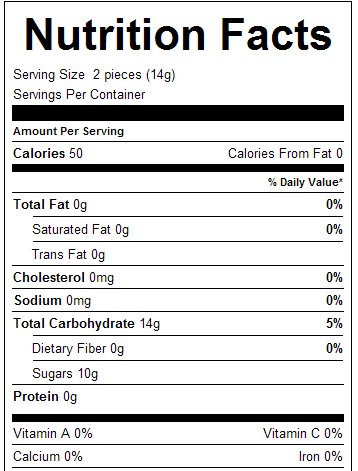 Spicy and sweet taste with natural ginger oil contained in these tan and brown stripped slabs. Settle the craving by adding this candy to your already growing collection of ginger flavored treats.
