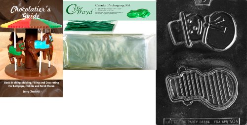Cybrtrayd Snowman Pour Box Chocolate Mold with Chocolatier's Bundle of 25 Cello Bags, 25 Green Twist Ties and Chocolatier's Guide
