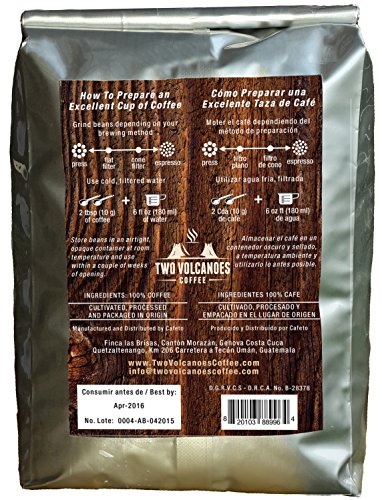 -. Title : Two Volcanoes Gourmet Coffee - Guatemala Dark Roast Espresso Blend - Organic Whole Bean & Ground Coffee. From The Best Guatemalan Arabica & Robusta Roasted Beans - Rare Coffee Gift !