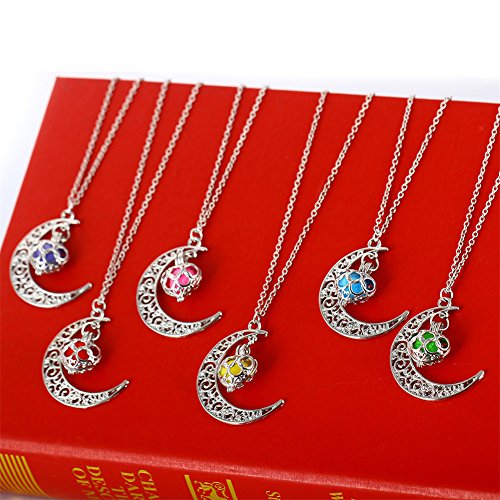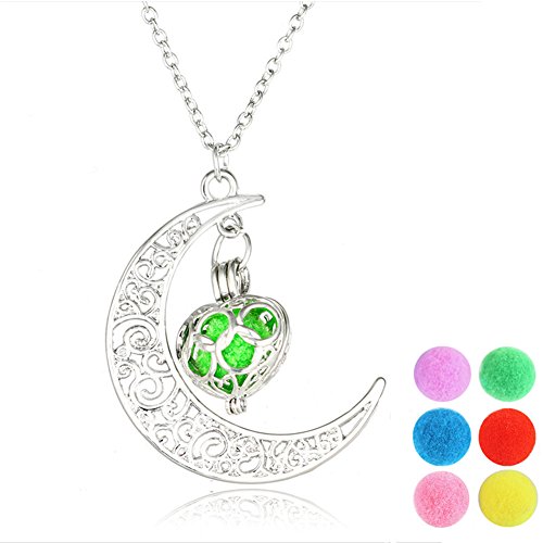 GIONO Aromatherapy Essential Oil Diffuser Necklace-Moon Locket Pendant with 6 Release Balls
