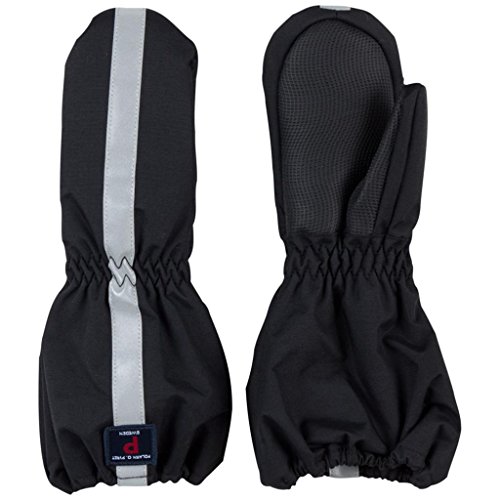 Studio : Polarn O. Pyret Publisher : Polarn O. Pyret Product Description Wind-resistant and waterproof insulated mitten with a dirt repellent finish! The insulation in this mitten comes with superior warming and thermal properties to keep little hands toasty all winter. Pre-bent fingers increase mobility. High cuff fits over or under outer garment and makes this mitten extremely easy to pull on your child - like pulling on a knee sock! Elastic around wrist and edge. Wide reflective strip at top of mitten. Grip fabric on palms. Shell: 100% Polyamide Padding: 100% Polyester 0