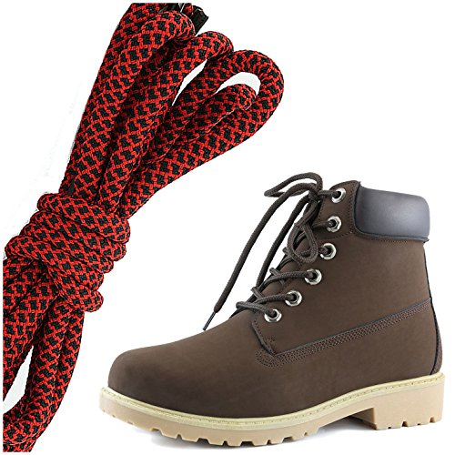 (DailyShoes)/Women's/Boots/DIRECT FROM USA/DailyShoes Women's Lace-Up Ankle Padded Collar Work Combat Hard Toe Booties, Red Black