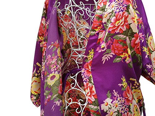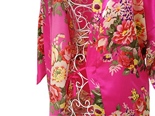 Women's Satin Floral Short Kimono Silk Robes for Bride and Bridesmaid Wedding Spa Party Robes Nursing Gown
