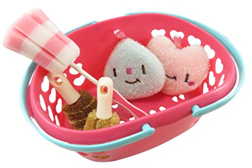 THE SPECIFICS: This cute plastic basket measures 11.75” x 5.5” in pretty pink with an aqua handle. Cleaning tools are for demonstration purposes only and not included.