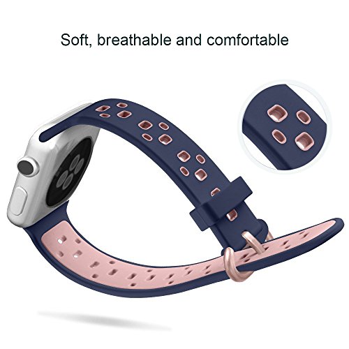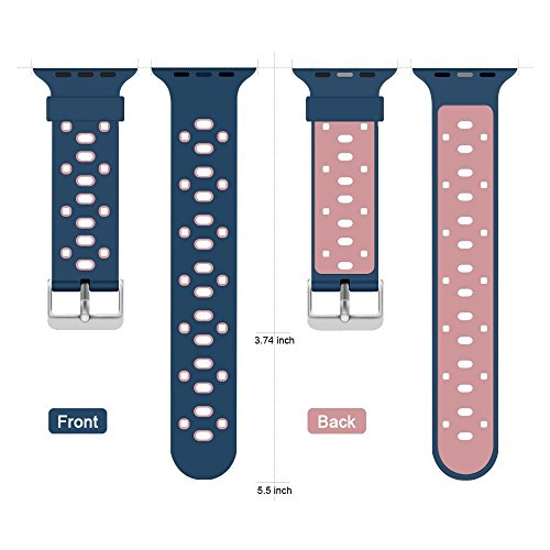 Silicone Apple Watch Band 42mm Sport Fan Wristband Soft Breathable Wrist Bracelet for Apple Watch Series 3 Series 2 Series 1 Sport Edition Replacement Strap (42mm Blue/Pink)