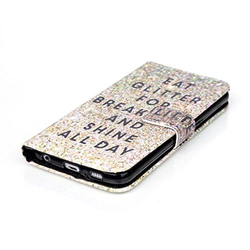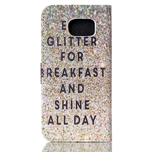 S6 Case,Galaxy S6 Case,Gold Sparkling Top Quality TPU Leather Flip Wallet Protective Soft Skin Case with Magnetic Flap Closure for Samsung Galaxy S6(Built-in Credit Card/ID Card Slot)