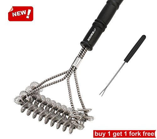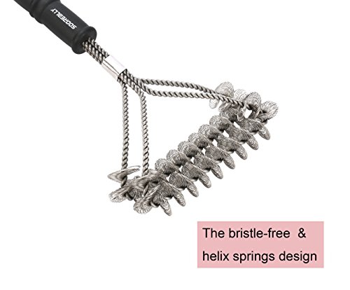 - BRISTLE FREE GRILL BRUSH - The bristle free BBQ grill brush with stainless steel helix springs material design is Not like traditional wire brush, no sharp edges, no bristle and no need to worry about bristles coming off into the food to damage your health. A perfect BBQ grill cleaning brush and scraper for grill accessories.