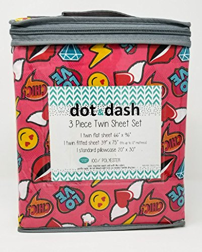 Dot & Dash 3 Piece Twin Sheet Set - Emojis on Red, Smilies, Rainbows, Diamonds
