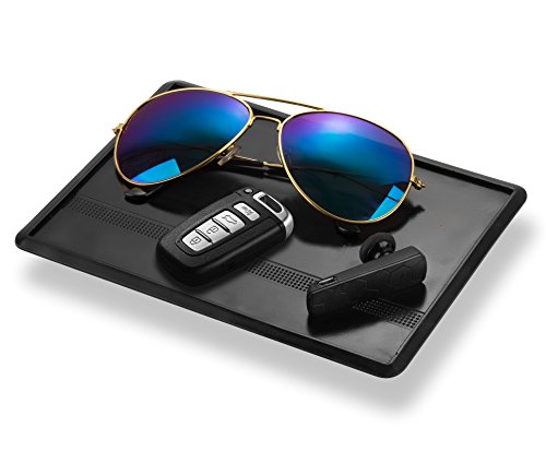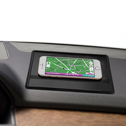 -. Feature : SLIP-PROOF DASHBOARD SILICONE RUBBER PAD - No adhesives, no suction cups, & no residue magic mat. Sticks on car dashboards & mounts easily. Leaves no chemical marks & scratches, keeps gadgets and dash console neat and damage-free. / DURABLE THICK SHAPED EDGE - Holds gadgets securely. Water resistant, temperature and tear resistant. Easy to adjust or reposition without tearing or losing shape. / REMOVABLE, WASHABLE, REUSABLE, RECYCLABLE - Convenient to remove & clean. Washable & retains its reliable sticky hold onto surfaces / UNIVERSAL FIT SLEEK BLACK - Minimalist design cradle & color matches most car dashboards. Non-distractive and unobstructive when driving. / CELLPHONE GADGETS & GARAGE DOOR OPENER HOLDER - Keep mobile phones, radar detector, electronic gate & door keys for easy access and viewing.