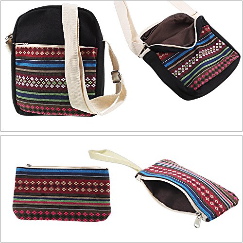 DESIGN: Ethnic flower design, casual style. Durable and soft canvas with clear and natural texture. With same pattern style messenger bag and handbag, satisfy different needs. Double zippered design, durable and convenient to use.