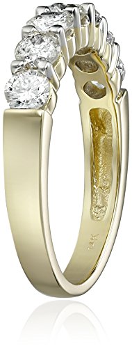 -. Binding : Jewelry -. Brand : Amazon Collection -. Department : womens -. Feature : 14k gold band featuring row of seven round diamonds in shared-prong settings / Metal weight ranges from 3.23-3.57 grams, depending on ring size / Can resize up or down 1/2 a size / All our diamond suppliers confirm that they comply with the Kimberley Process to ensure that their diamonds are conflict free. / Imported -. Label : Amazon Curated Collection -. Manufacturer : Amazon Curated Collection -. Model : B000OMIXGC-Parent -. ProductGroup : Jewelry -. ProductTypeName : FINERING -. Publisher : Amazon Curated Collection -. Studio : Amazon Curated Collection -. Title : 14k Gold Seven-Stone Diamond Ring (1 cttw, H-I Color, I1-I2 Clarity)