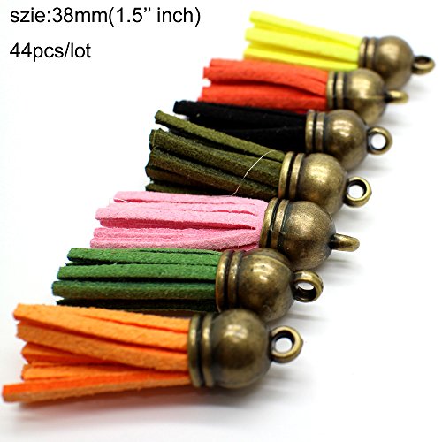 Pamir Tong 44pcs 38mm(1.5'') Multi-Colors Suede Leather Tassel with Bronze Caps Cell Phone/Earring/ Bag/Key Chain Accessory /DIY Charms GD44ST02