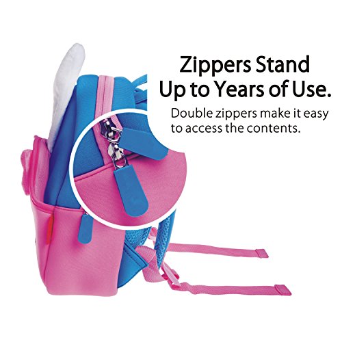 UNBEATABLE: The adorable backpack flaunts an attractive pink and blue color that will even make the third graders envious. And it is made of super paddy diving fabric - neoprene (SBR material) which is waterproof, water resistant, sustainable and eco-friendly.