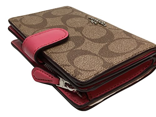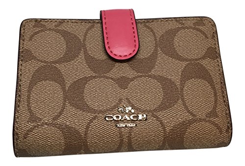 Product DescriptionCoach Signature PVC Medium Corner Zip Wallet Khaki Magenta F235530