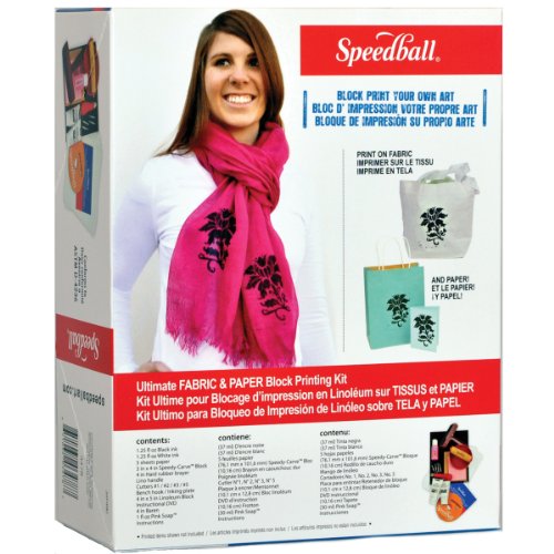 The Ulimate Fabric and Paper Block Printing Kit by Speedball contains all you need to get started on your next block printing project! Comes with black and white fabric/paper inks, printing paper, hard rubber brayer, instructional DVD, booklet and more.Feature