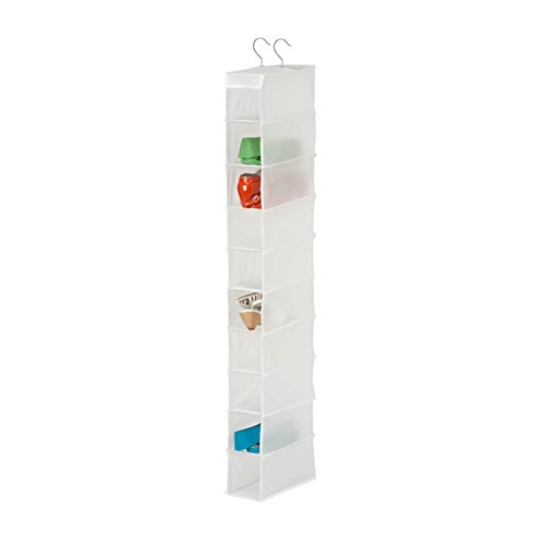 Honey-Can-Do SFT-01425 Hanging Closet Organizer, Clear, 10-Shelf. Durable and breathable material. Easy to setup, no tools are required. Hangs from most standard closet rods, easy to access. Made with eco friendly PEVA material, which is a non-chlorine, PVC-free, biodegradable material. Take advantage of all your limited closet space with the hanging 10-shelf organizer, measures 5.5 x 11.5 x 51-inches. Perfect way to take advantage of vertical space in your closets. Home organization made easy.