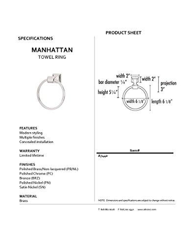 Alno A7440-PN Manhattan Modern Towel Rings, Polished Nickel, 6-1/8"