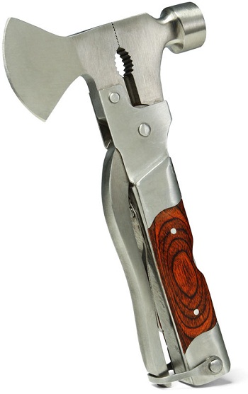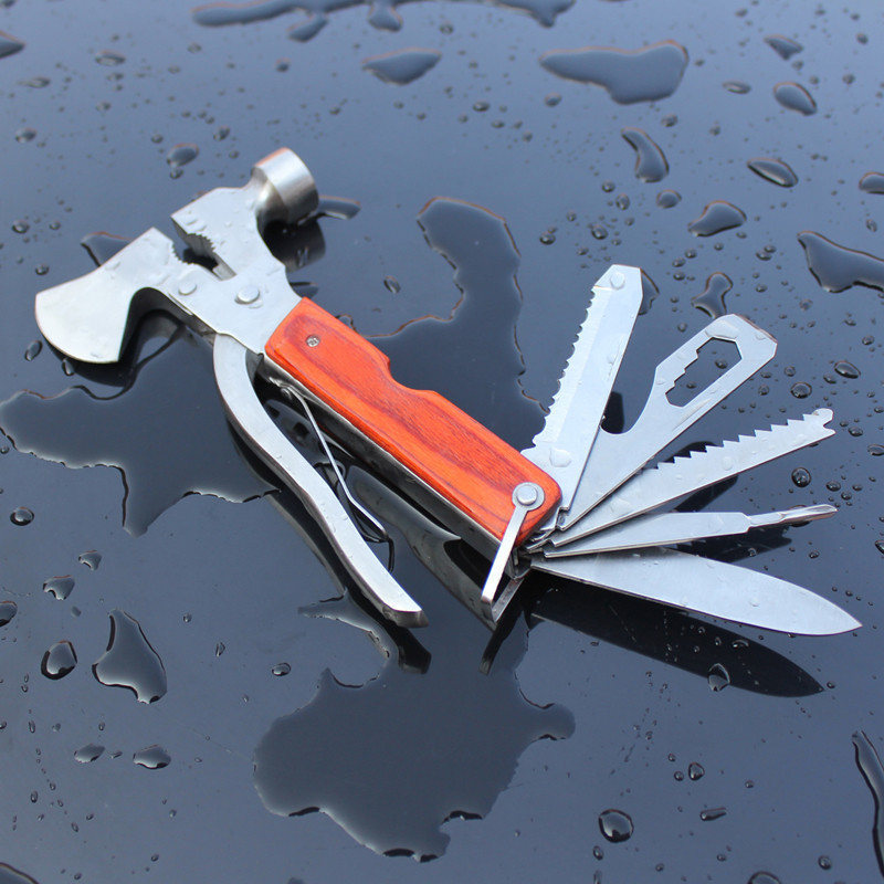 Alat bantu serba bisa dan serba lengkap, yang terdiri dari kapak, palu, tang, dan pisau kecil, gergaji mini, dan pembuka tutup botol. Terbuat dari bahan stainless steel berkualitas tinggi, alat ini cocok dipergunakan di rumah, kantor, atau kegiatan outdoor.Palu Multitool 8 in 1 adalah perkakas multi role yang wajib dimiliki setiap keluarga, baik untuk pemakaian di rumah, otomotif, hiking atau sekedar camping dan acara luar ruang lainnya.