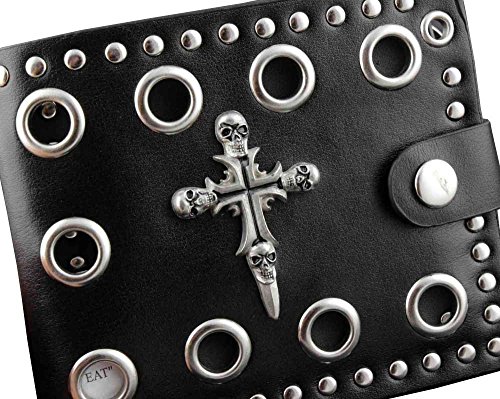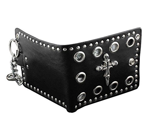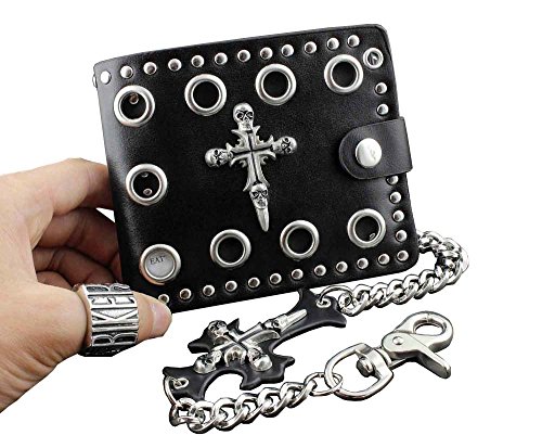 -. Title : Men's Rock Punk Skulls Cross Money Black Leather Wallet With A Chain W91
