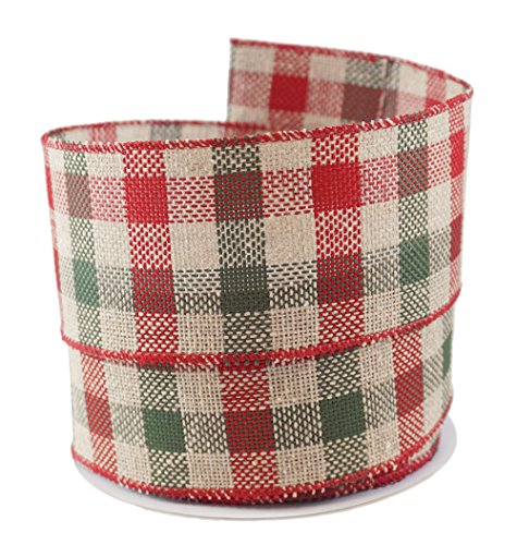 Christmas Plaid Burlap Linen Wired Ribbon #40 - 2.5" x 10 yards