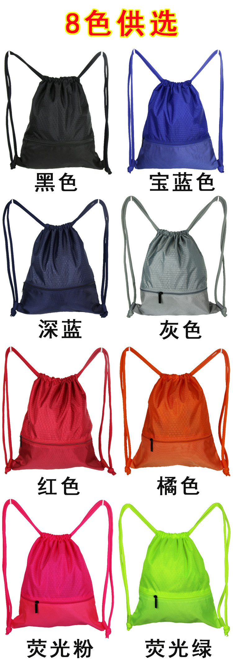 On the size: large size is 40cm * 50cm, you can hold a basketball + a pair of sports shoes, suitable for 165cm or more pro: trumpet size is 35cm * 45cm, you can hold football, sports shoes, fitness clothes, , Suitable for height below 165cm pro.