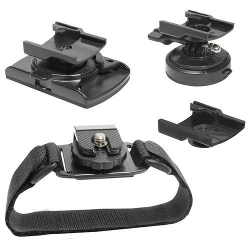 - Universal Helmet mount attaches to solid helmets or other solid surfaces with the included adhesive pads