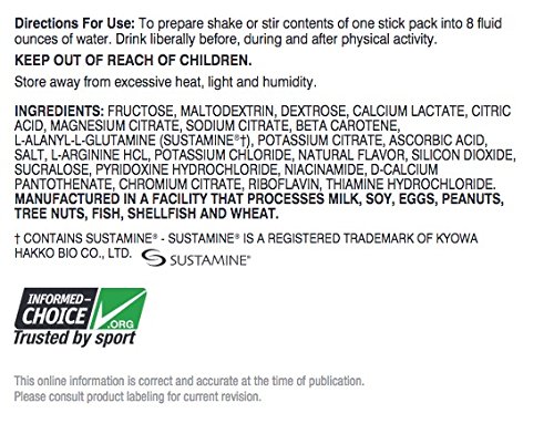 Studio : AdvoCare Publisher : AdvoCare Binding : Health and Beauty Product Description Helps replace minerals and electrolytes lost through sweat and supports recovery after a workout using vitamins, minerals, carbohydrates, Sustamine and a blend of important electrolytes. AdvoCare Rehydrate provides the nutrients to help maintain proper metabolism, delay the onset of fatigue, and hydrate your body by re-establishing your electrolyte balance. Rehydrate has a 1:1 ratio of sodium and potassium, two of the most vital electrolytes lost when we sweat. Overall, Rehydrate includes antioxidants (vitamins A and C), carbohydrates, electrolytes, Sustamine® and other nutrients that effectively promote optimal hydration and recovery. Sustamine is a patented ingredient that works on multiple levels to help rehydrate the body and sustain energy levels during exertion. Clinically tested, Sustamine is produced through a patented fermentation method to create a unique dipeptide that is more easily absorbed by the body than complex protein molecules. This makes Sustamine a highly effective ingredient for hydration, endurance and recovery. DIRECTIONS For ages 4 and older. To prepare, shake or stir contents of one pouch or scoop into 8 fluid ounces of water. Drink liberally before, during and after physical activity 0