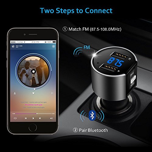Universal Compatibility - Bluetooth car adapter can be paired as a hands-free kit with all Bluetooth enabled devices, like iPhone, iPad, iPod, Tablet, and other Andriod Smartphones; Stream music and calls directly from your mobile devices to car stereo system via FM radio signal( 87.5-108.0MHz).