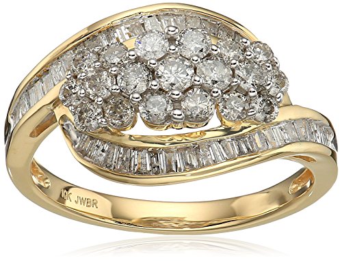 -. Title : 10k Yellow Gold Diamond 3 Cluster Ring (1 cttw), Size 7