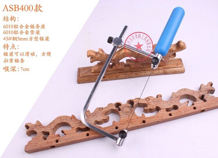 ASB400 models - Adjustable, natural state saw blade bow between the two saws about the net distance of about 0-135mm, throat about 70mm, the total length of about 195-290mm
