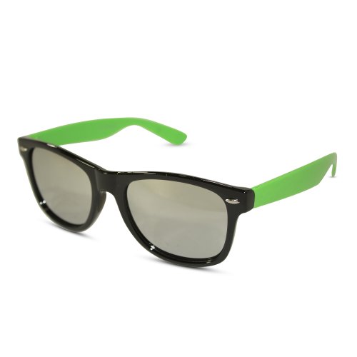 -. Title : Two Tone Neon Contrast Wayfarer Style Sunglasses with Silver Mirrored Lens