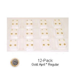 -. Feature : Surgical Steel Ear Studs / 12 Pair 3MM Glass Foil Back Stones in a dozen pair April birth month set. / Each stone is set in sterilized surgical steel / All earrings exceed all F.D.A / E.C requirements. Earrings are sealed and sterilized in individual packages. / Comes with Butterfly Earrings backs, are grooved friction post for secure fastening.