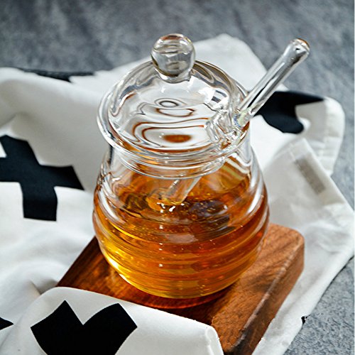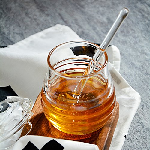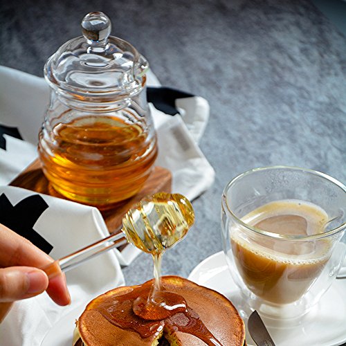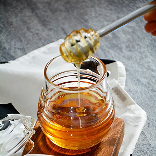 TAMUME 290ml Crystal Glass Honey Jars with Glass Honey Dipper and Lid Cover