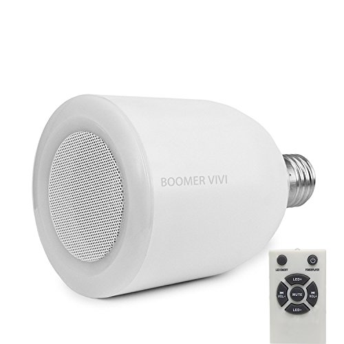 -. Feature : Bluetooth LED Bulb Speaker: The high quality speaker inside the bulb will play back your music with an amazingly clear sound. With 2-in-1 design, You could control lamp, adjust brightness, music volume and control music play via remote control. The bulb speaker seamlessly brings music to any room in the house, so you can easily set the soundtrack to your night. / Easy setup with standard E27 bulb base. / Cost and Energy Savings: The Smart LED SpeCost and Energy Savings: The Smart Led Speaker Bulb have a lifetime of 30,000 hours and consumes just 5 watts delivering about 90% energy savings, the lumen output is the equivalent of a 40 Watt Incandescent Bulb. / An Atmosphere Music Bulb: our friends will be amazed where the music comes from. Fit for home / Living room / Porch lighting / Parties / bar / coffee / restaurant /Shopping mall / hotel / Office building etc. / FULL SATISFACTION OR YOUR MONEY BACK: We are so sure you'll love our portable Bluetooth speaker, that we offer you a 3 MONTHS Money Back Guarantee and a 1-Year warranty. BOOMER VIVI warranty guarantees that your purchase is 100% risk-free!Click Add To Cart Now!