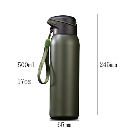 YooZoo 17 oz Double Wall Vacuum Insulated Stainless Steel Commuter Water Bottle Flask with Flip Straw Leak Proof - Keeps Hot & Cold,Perfect for Camping Hiking Cycling Fitness
