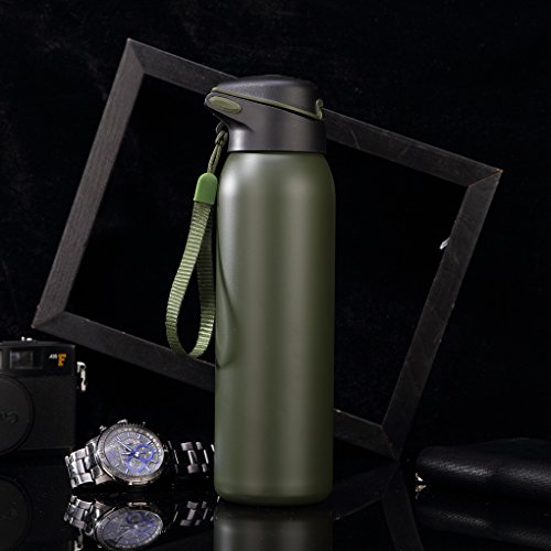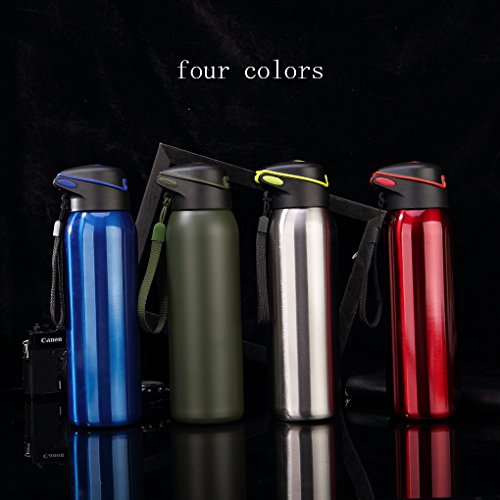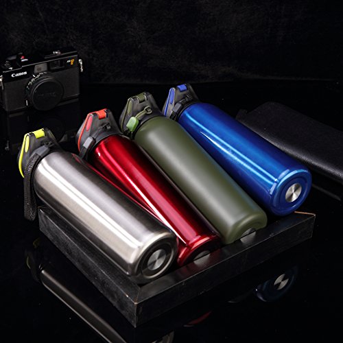 - BPA-FREE: Made of food grade 18/8 stainless steel both inside and inside walls. Eco-friendly, non-toxic, shockproof and shatter proof, rust and leak proof, scratching resistance, double wall, no sweat, no condensation on your desk any more. Food grade silicone lip, guarantee no leak with the cap on. Put the water bottle in your bag freely.