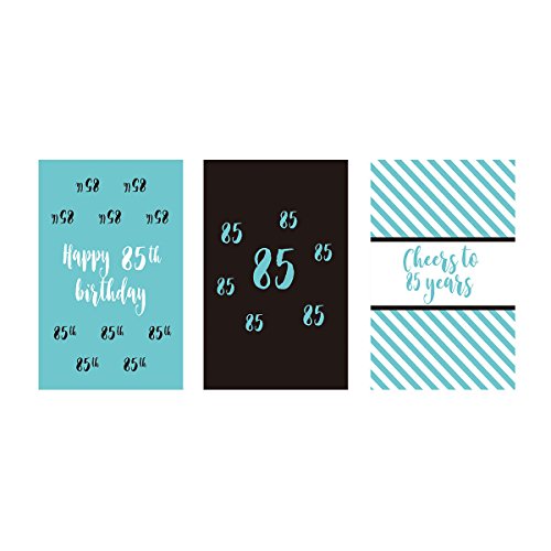 - Blue, black and white design, great for 85th birthday party decorations, favors.