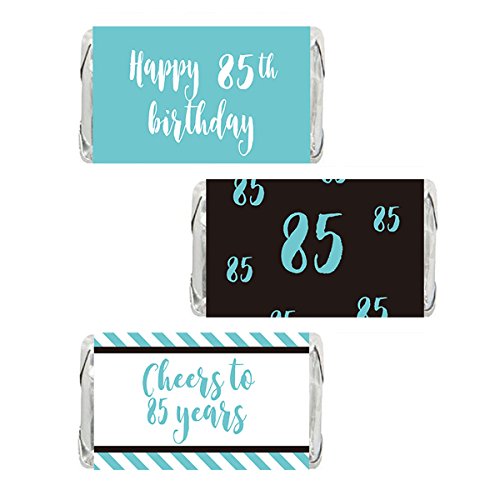 Blue 85th Birthday Miniatures Candy Bar Wrapper Stickers, Party Favor Labels, 54 Count