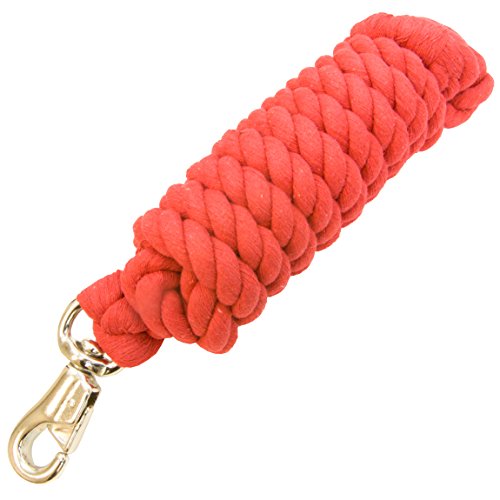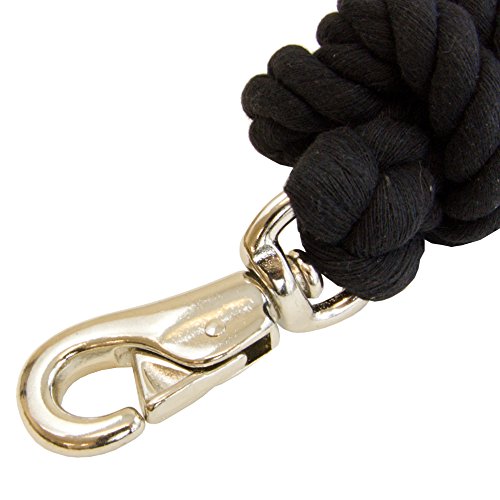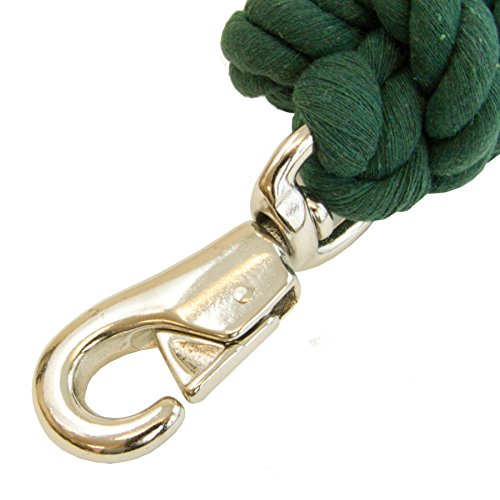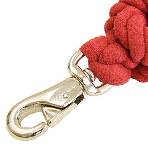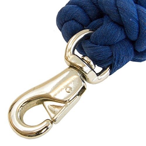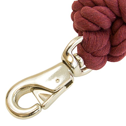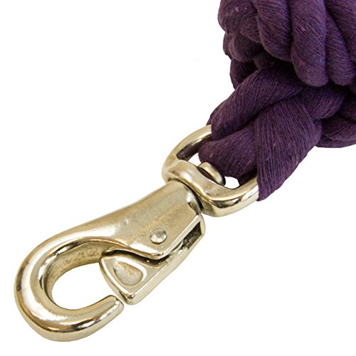 Product Description 10 FOOT COTTON LEAD ROPE with/BULL SNAP This is a great lead for around the barn or at shows. These are VERY sturdy and super soft on your hands. Cotton Lead Rope 10 X 3/4 with chrome plated bull snap. Available in the following colors: Black, Red, Royal Blue, Burgundy, Hunter Green, Purple, Teal and White. 0