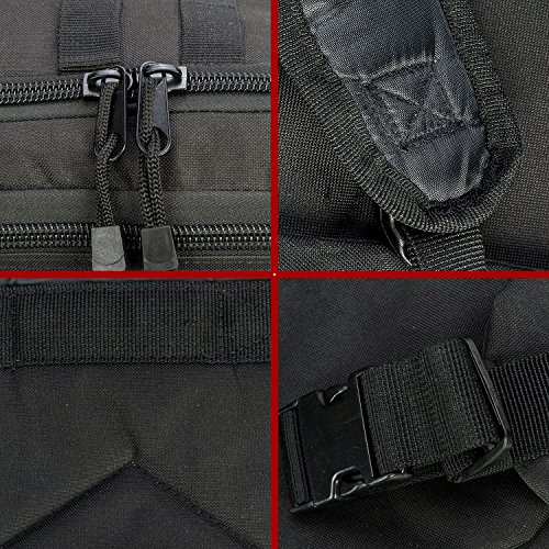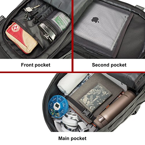 Main area expands from 5" to 10" to fit more gear.The bag with 3 compartment for different function. An Organizer pocket has several mesh compartments built in. Side parachute clasps. Easy grip zipper pulls .Back support belt with parachute clasps