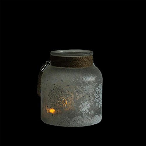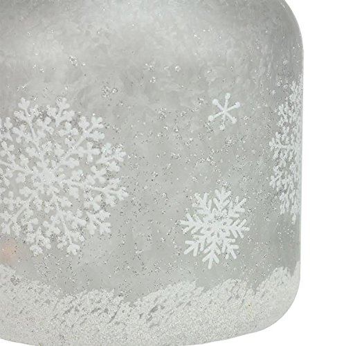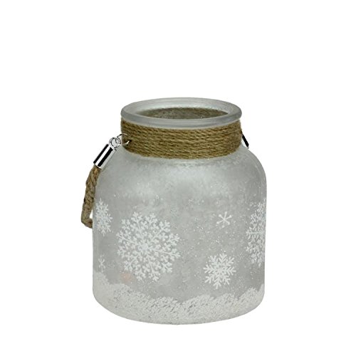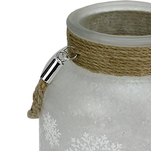 -. Title : 6.25" White Iced with Glittered Snowflakes Decorative Pillar Candle Holder Lantern with Handle