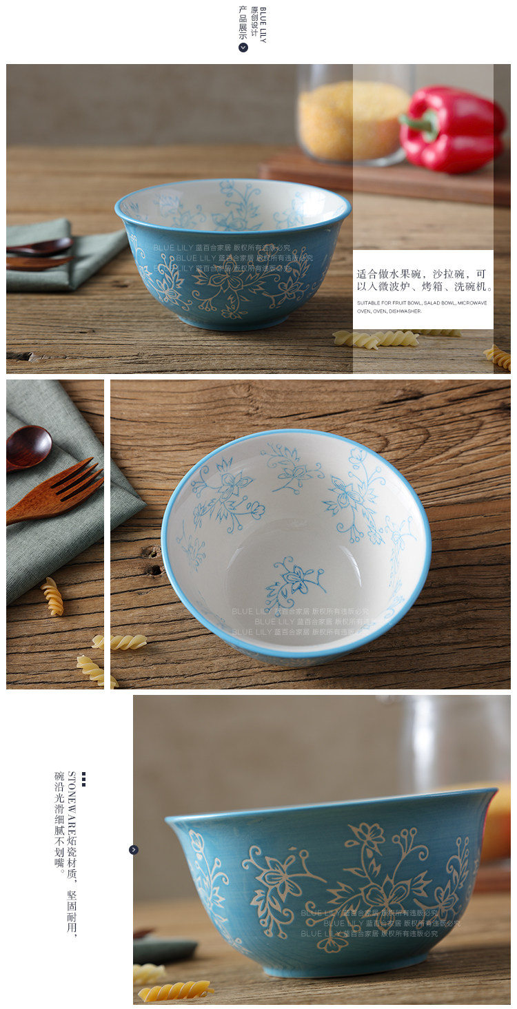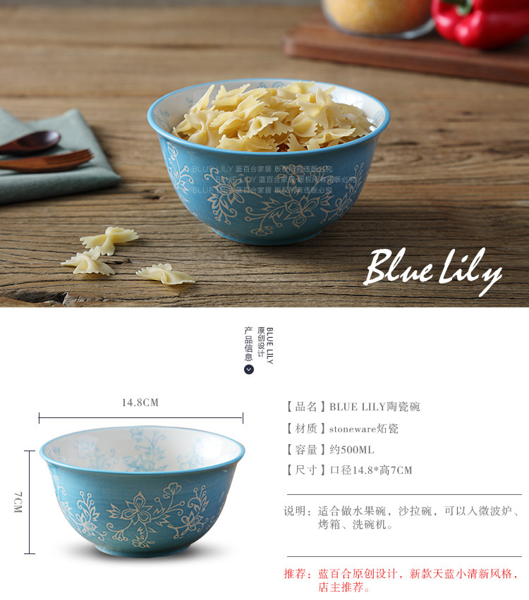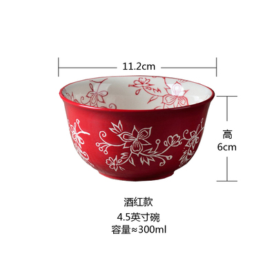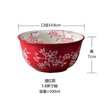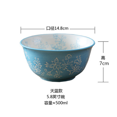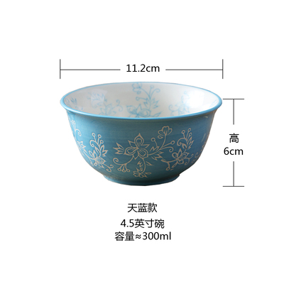 实用美式乡村田园风手绘釉下彩陶瓷碗4.5寸5.8寸泡面碗饭碗亲子装