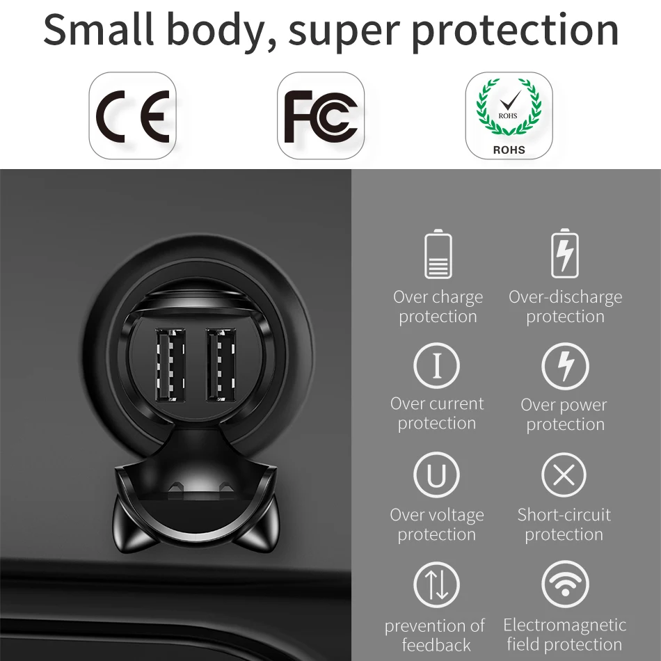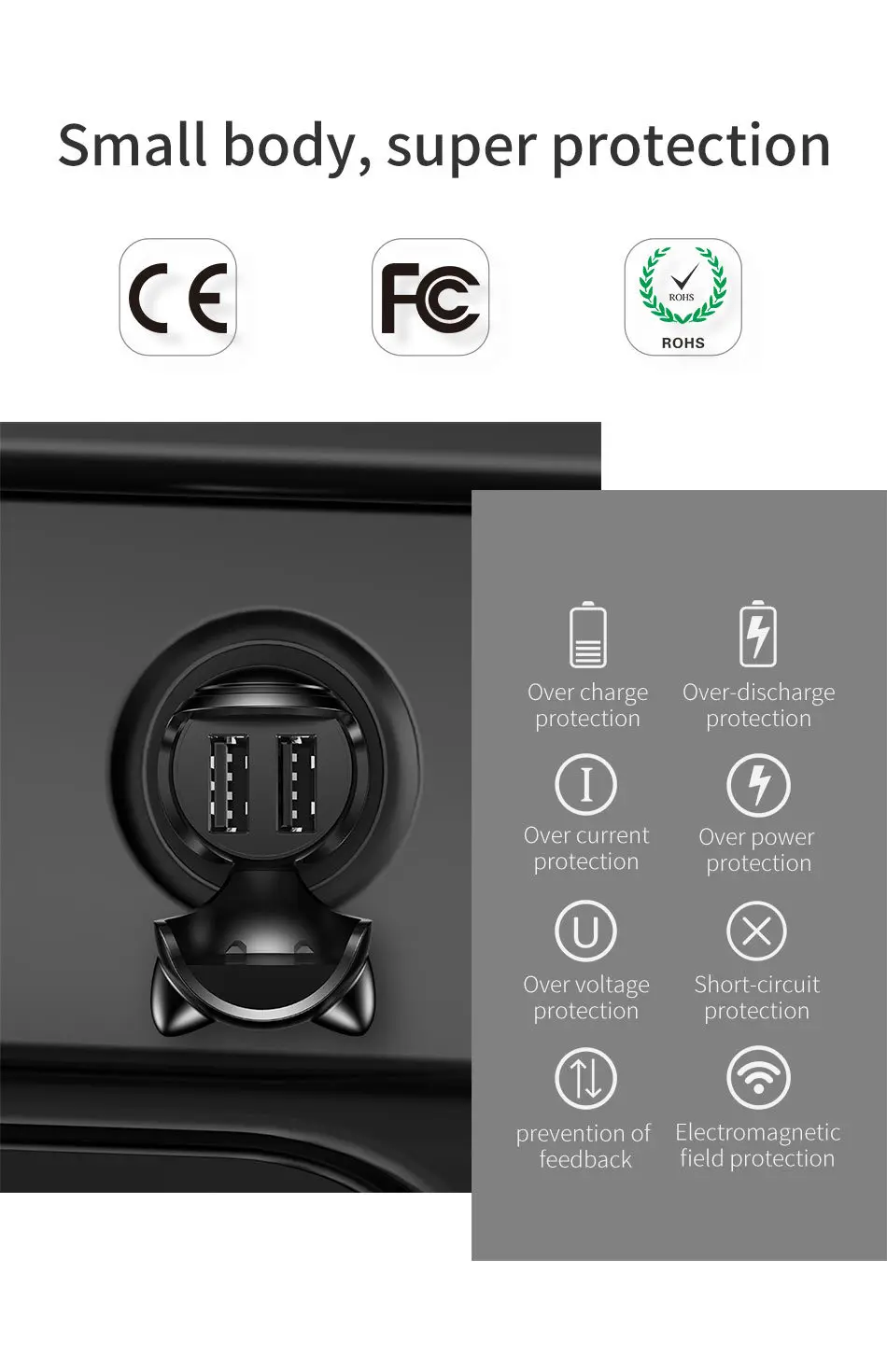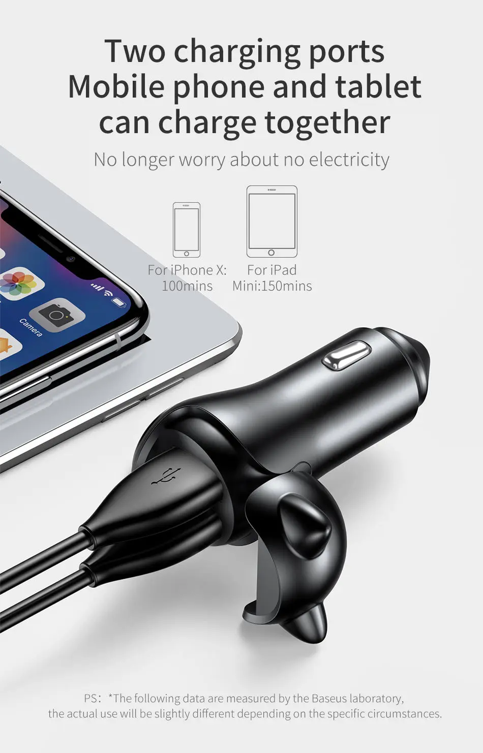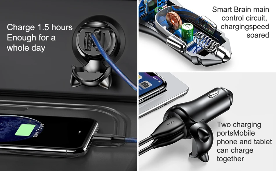 - Double USB ports design supports mobile phone and tablet charged simultaneously.