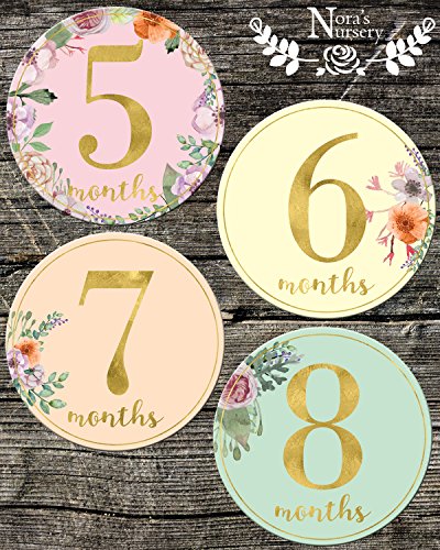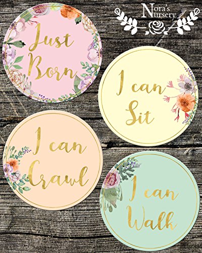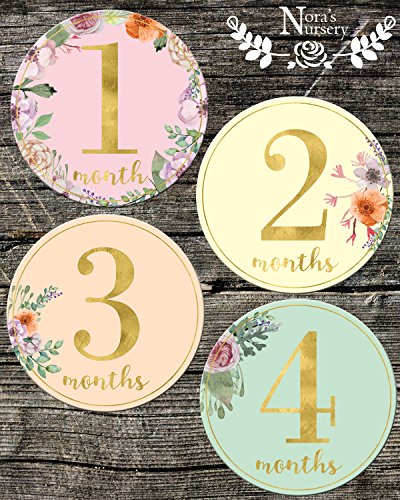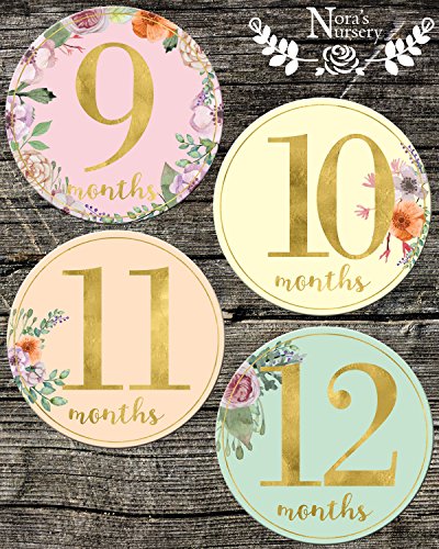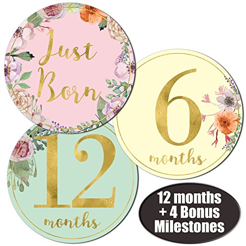 Newborn Baby Girl Gold Floral Monthly Stickers - Great Shower Registry Gift or Scrapbook Photo Keepsake