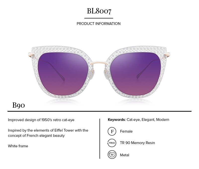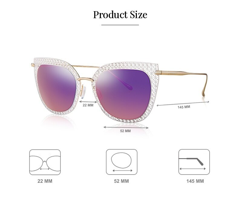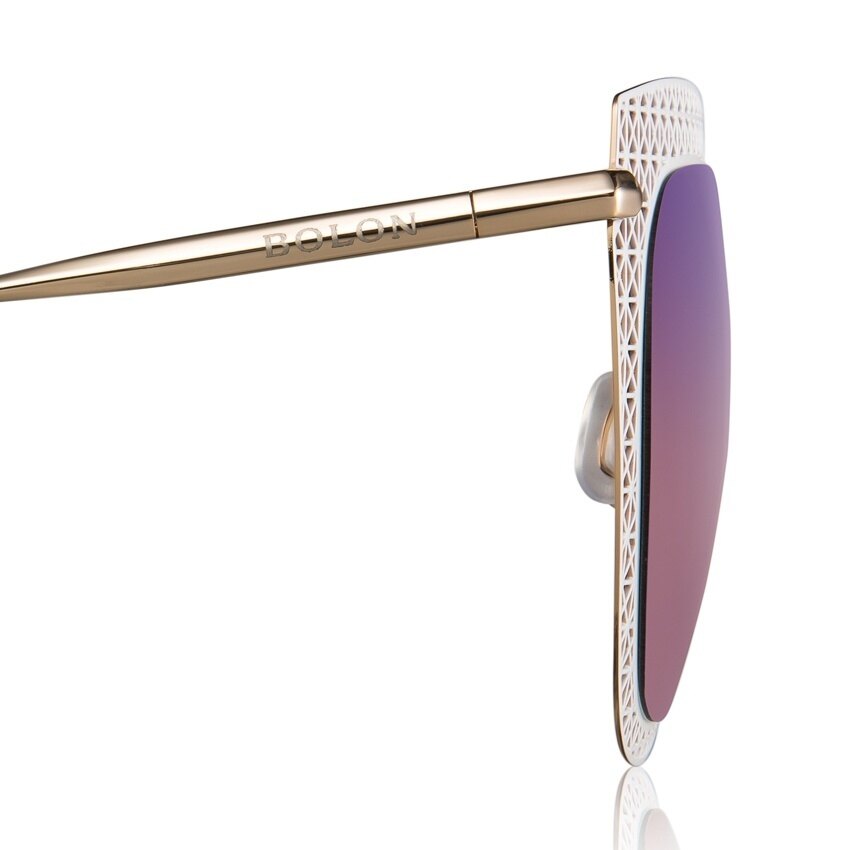Stand out of the crowd like the most famous star in Hollywood with this chic and modern CATEYE design BOLON sunglasses. The unique GOLD color temple arms feature PURPLE color UV 400 protection lenses to give you the maximum comfort with style. Comes with a free premium black leather protective case & a branded cleaning cloth.