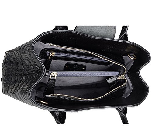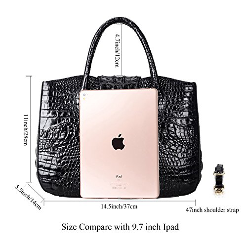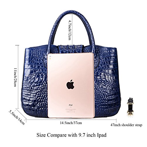 -. Brand : PIJUSHI -. Color : Purple -. Department : womens -. Feature : 100% leather, Embossed Crocodile Cow leather; / Lining fabric / Magnetic flap and zipper closure / Size: L 14.5" x H 11" x W 5.5" with 34" removable & adjustable shoulder strap / Structure:Large Space for storage, a middle zipper pocket for separate, 2 open pockets in one side, and 1 zipper pockets in another side; -. PackageQuantity : 1 -. ProductGroup : Shoes -. ProductTypeName : HANDBAG -. Size : One Size -. Title : Pijushi 22201 Classic Ladies Crocodile Embossed Leather Satchel Bag Women's Top-handle Handbags