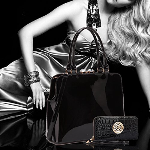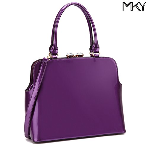 -. Title : Women Shiny Patent Leather Handbag Top Handle Satchel Shoulder Bag w/ Top Rhinestone