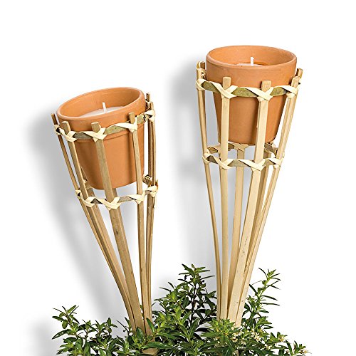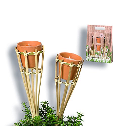 The Citronella Wax Candle Kit, Includes 2 Mini Candle Pots Plus 2 Bamboo Holder with Posts, 10 1/4 L x 2 3/4 W x 14 5/8 Inches, By Whole House Worlds