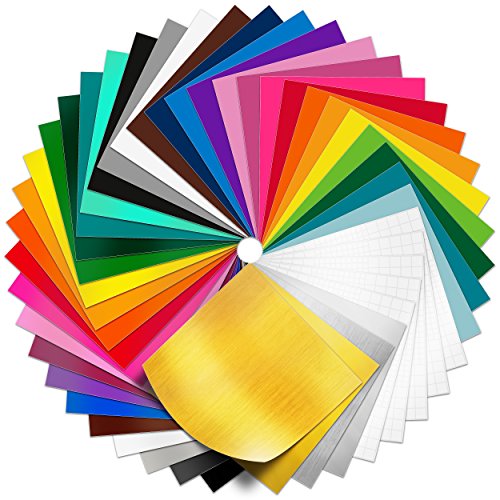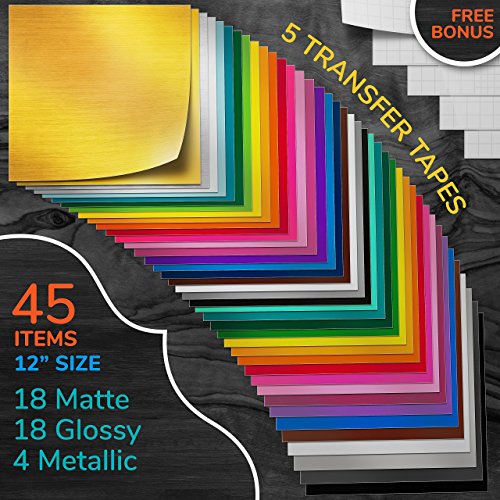Pack of 45 12" x 12" Permanent Adhesive Vinyl Sheets for Cricut Vinyl, Craft Vinyl Cutters and More, Permanent Vinyl Sheets Assorted 40 Colors Glossy, Matte, Metallic and Brushed Best cricut materials